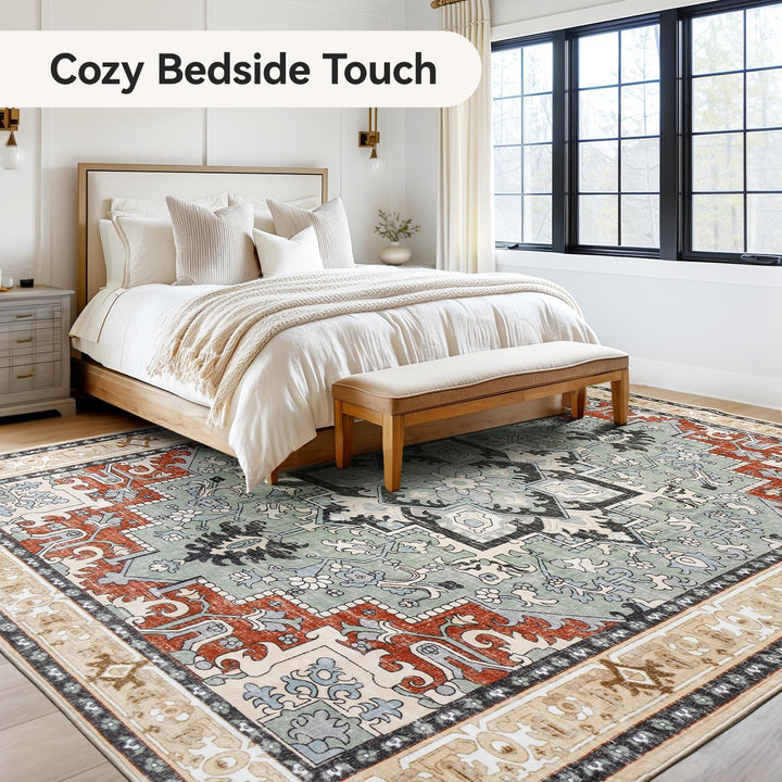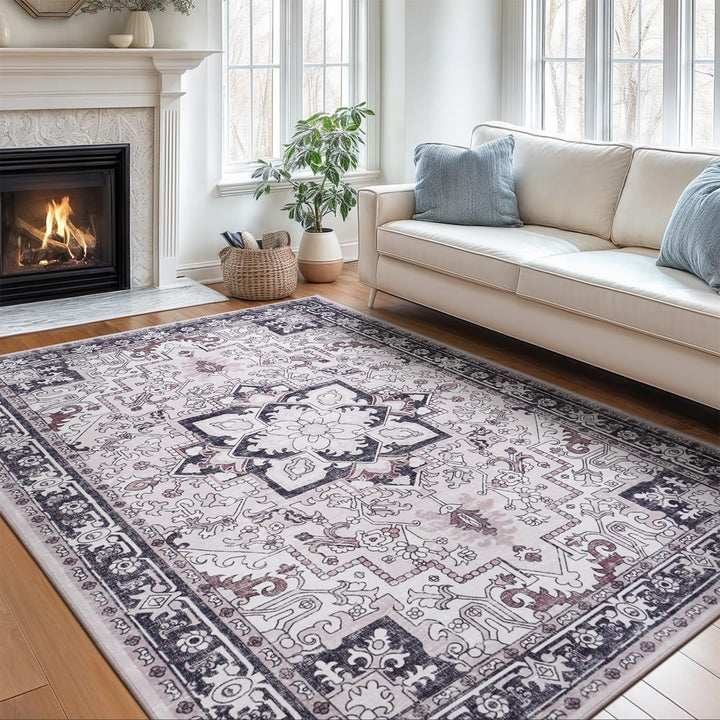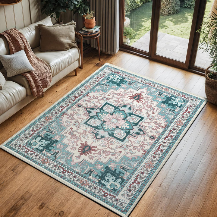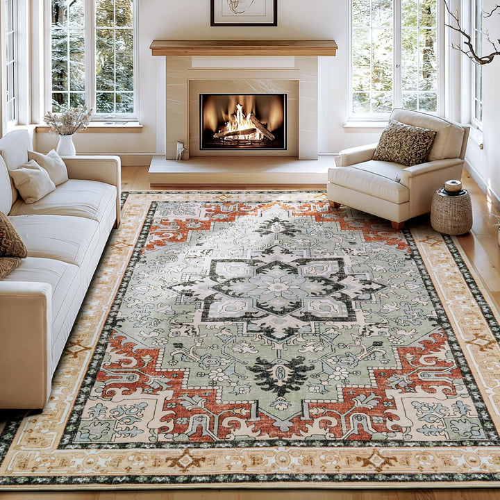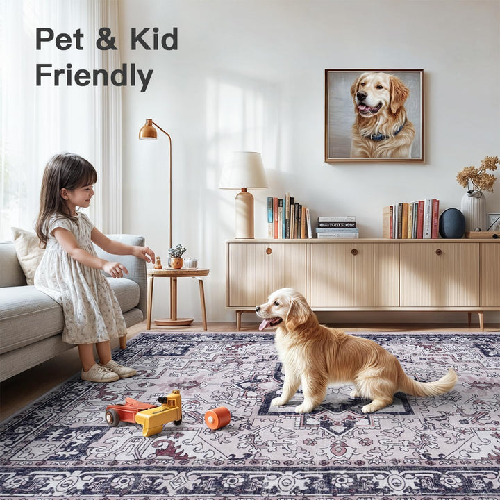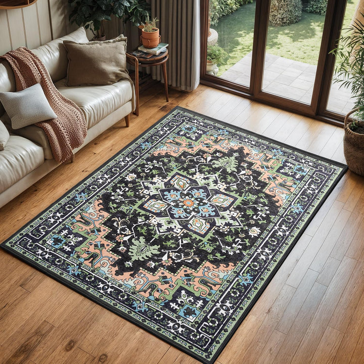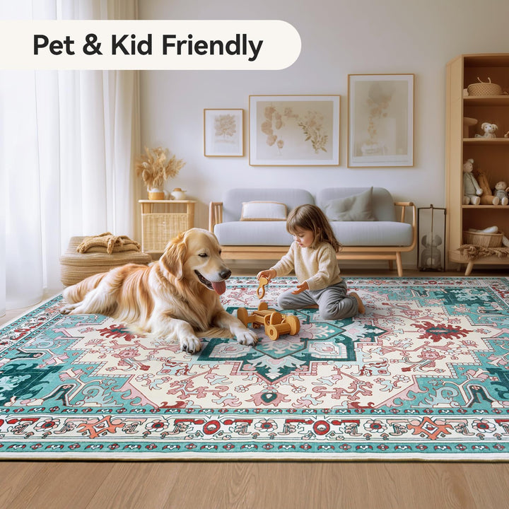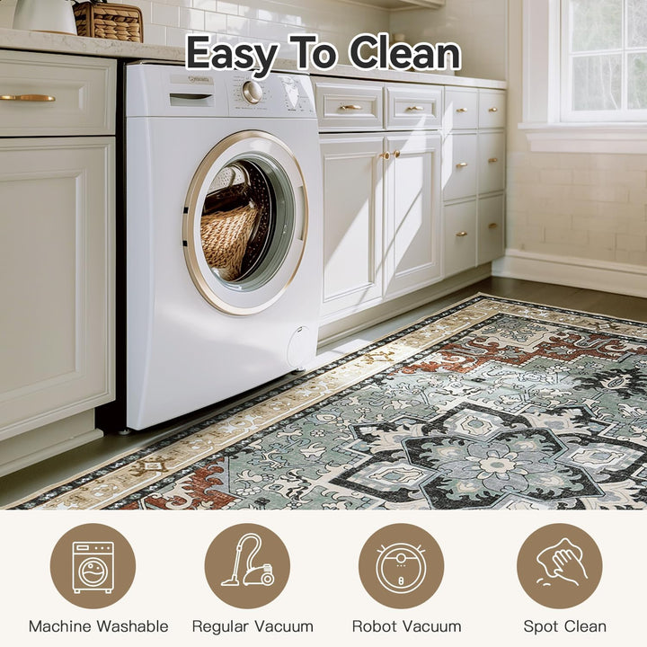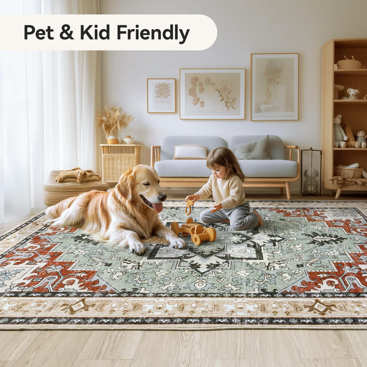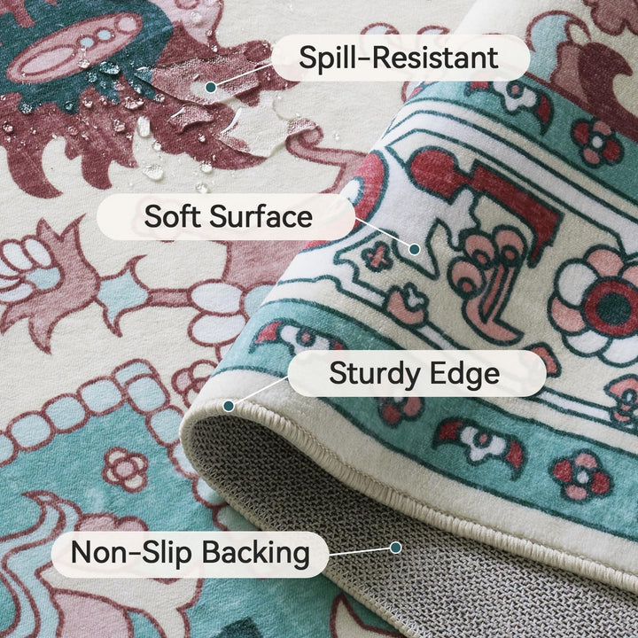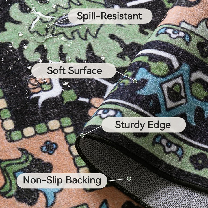 Safe and Non-Slip: Our traditional vintage-print carpet features an upgraded non-skid TPR rubber backing that keeps it securely in place, preventing movement or slipping. This ensures a safe environment for everyday activities, making it an ideal choice for homes with kids and pets.