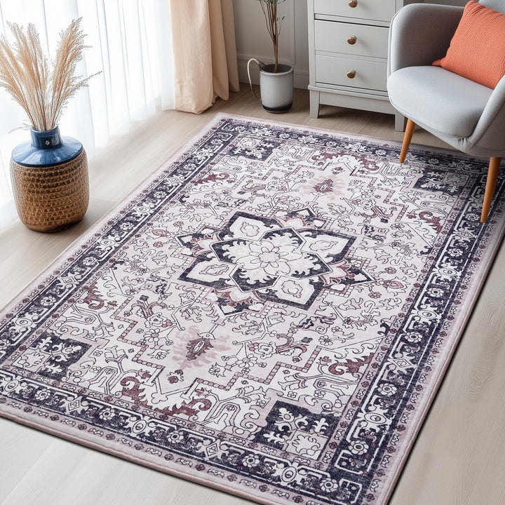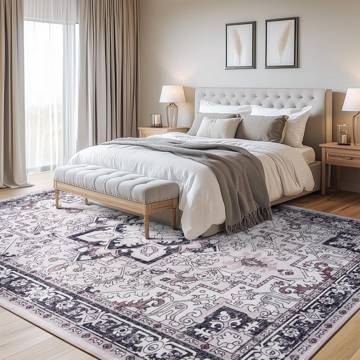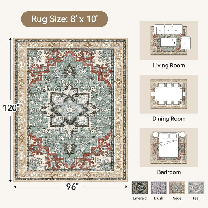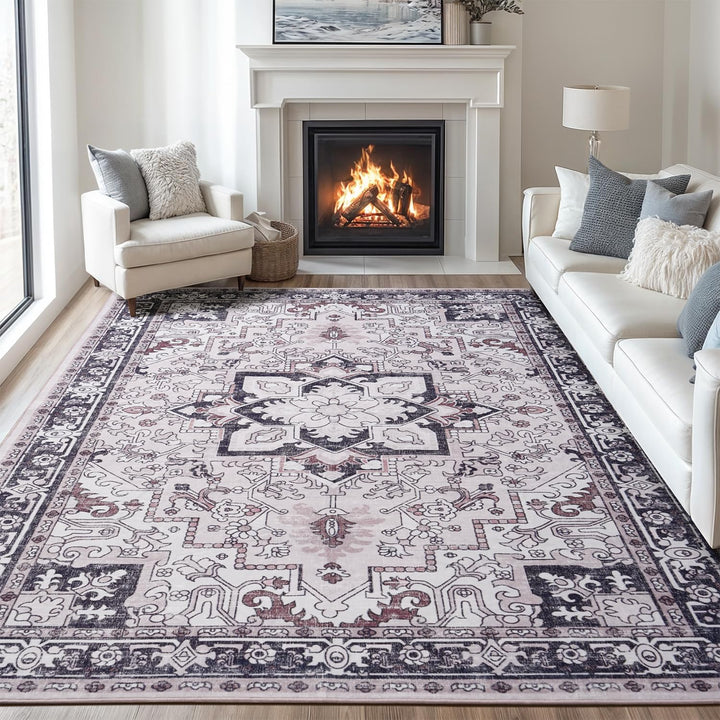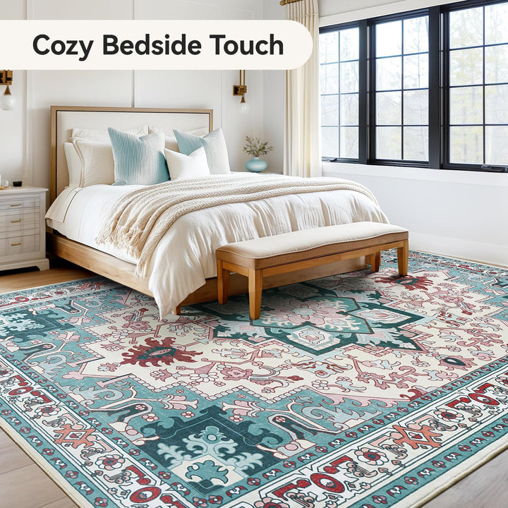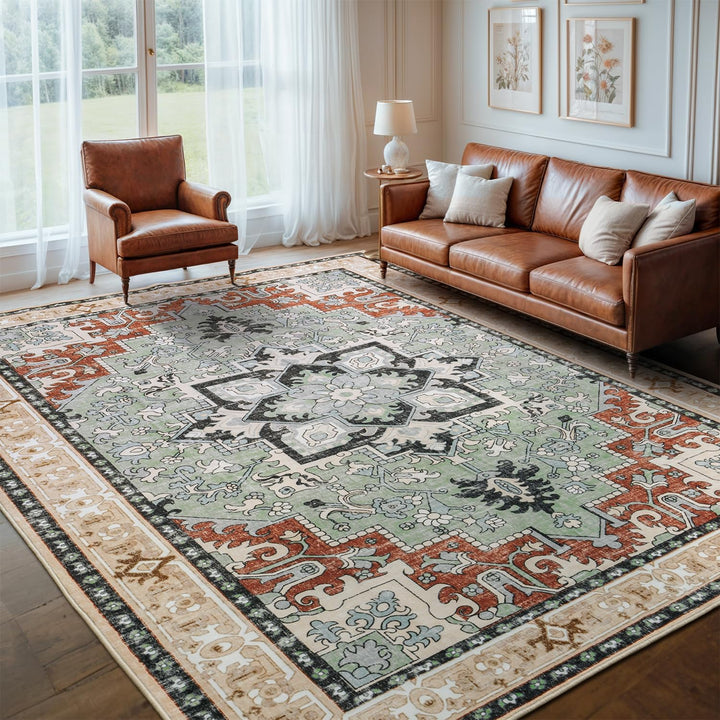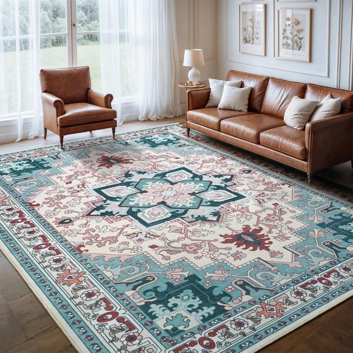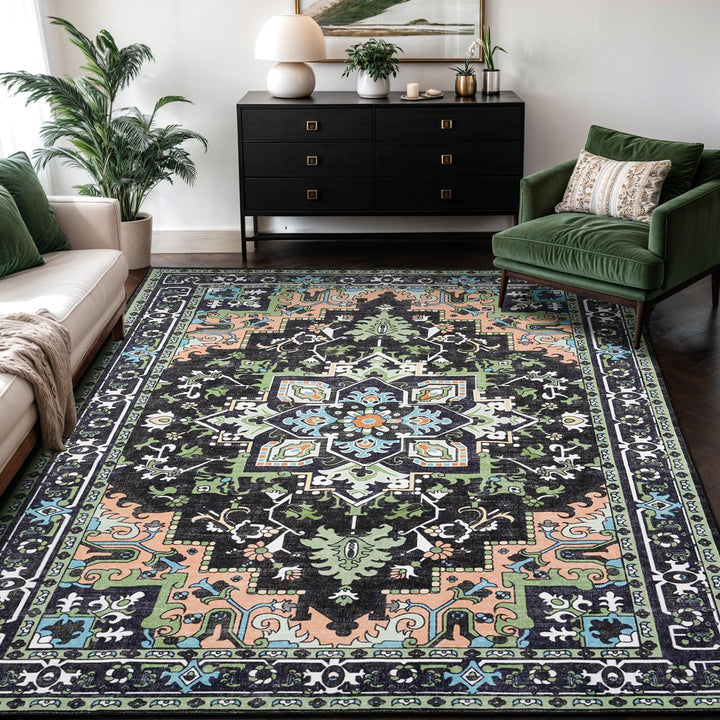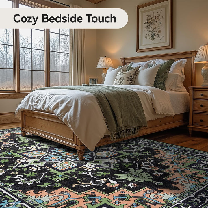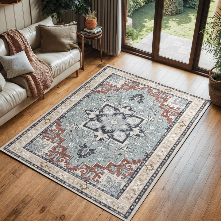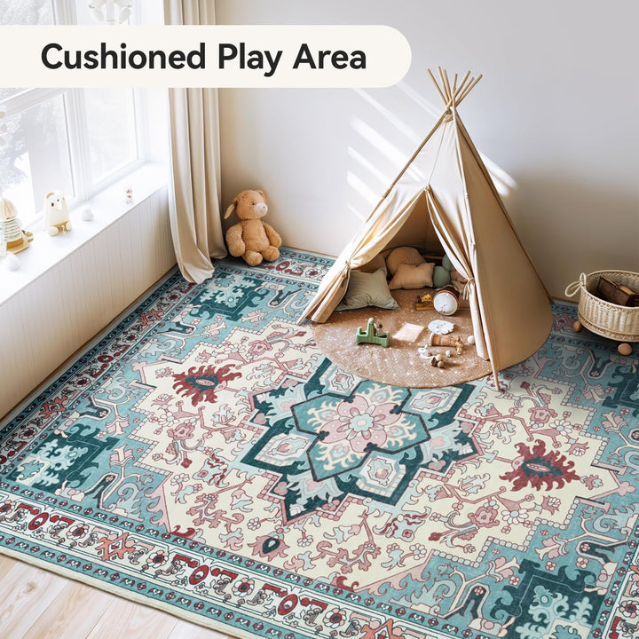 Safe and Non-Slip: Our traditional vintage-print carpet features an upgraded non-skid TPR rubber backing that keeps it securely in place, preventing movement or slipping. This ensures a safe environment for everyday activities, making it an ideal choice for homes with kids and pets.