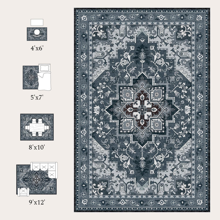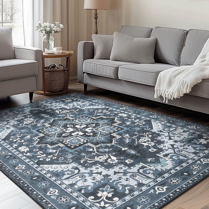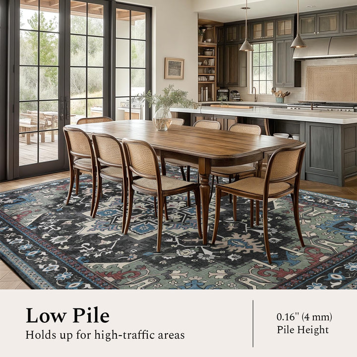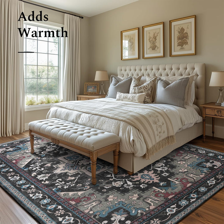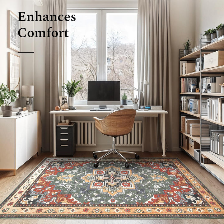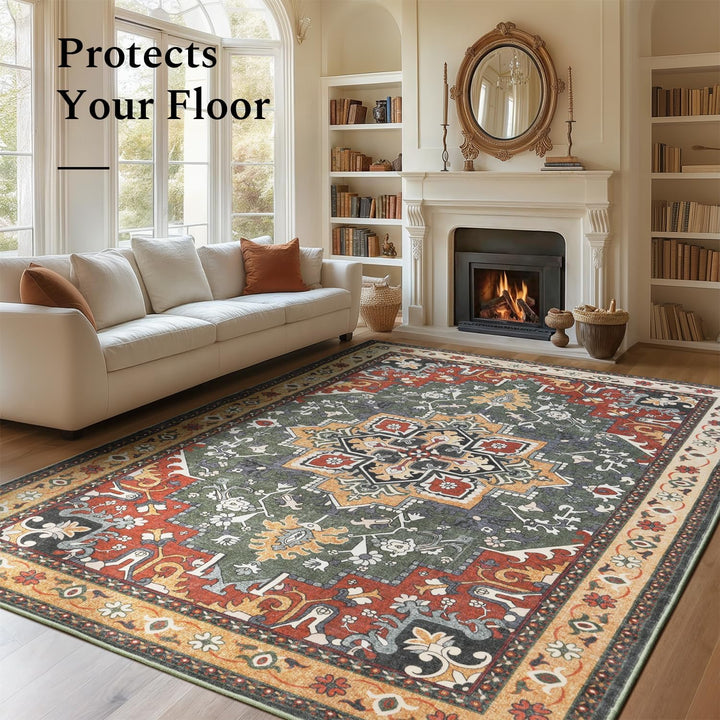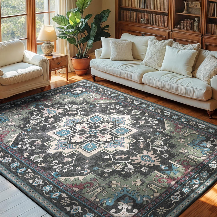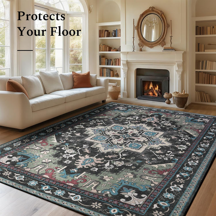Versatile Style: Elevate any space with our large 8x11 rug in Vintage Boho print. Blends floral & subtle oriental details, complementing living, dining home& office decor. Multi-scene adaptability hides furniture marks while adding artistic flair