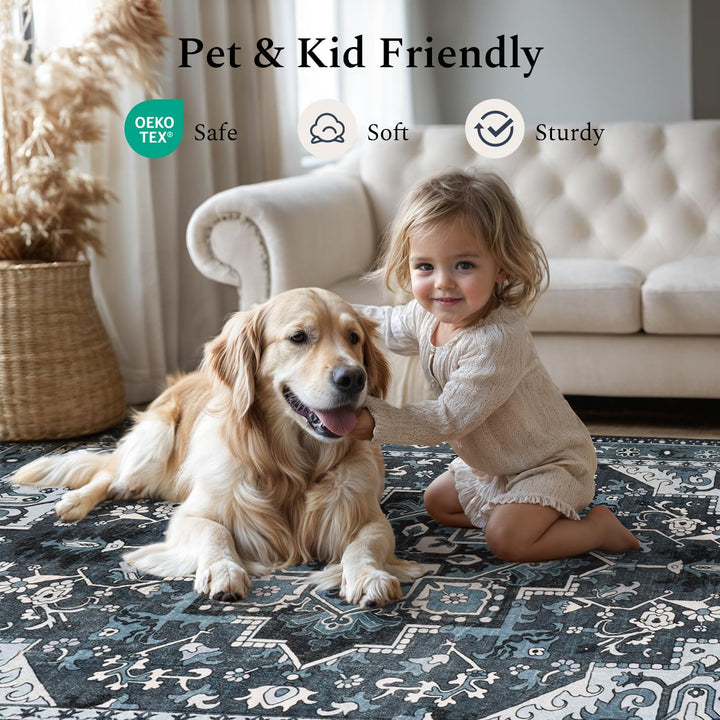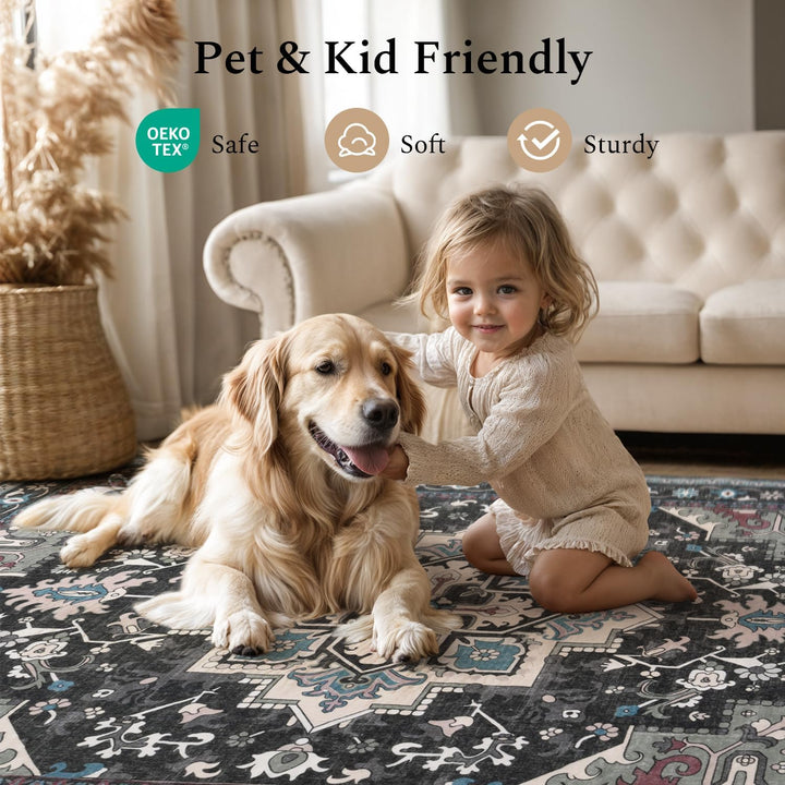 Kid and Pet Friendly: The vintage pattern camouflages pet hair and minor stains from playtime. Ultra-soft texture is gentle on paws and knees, while the slip-resistant base keeps play zones secure. Ideal for pet owners or families with active kids