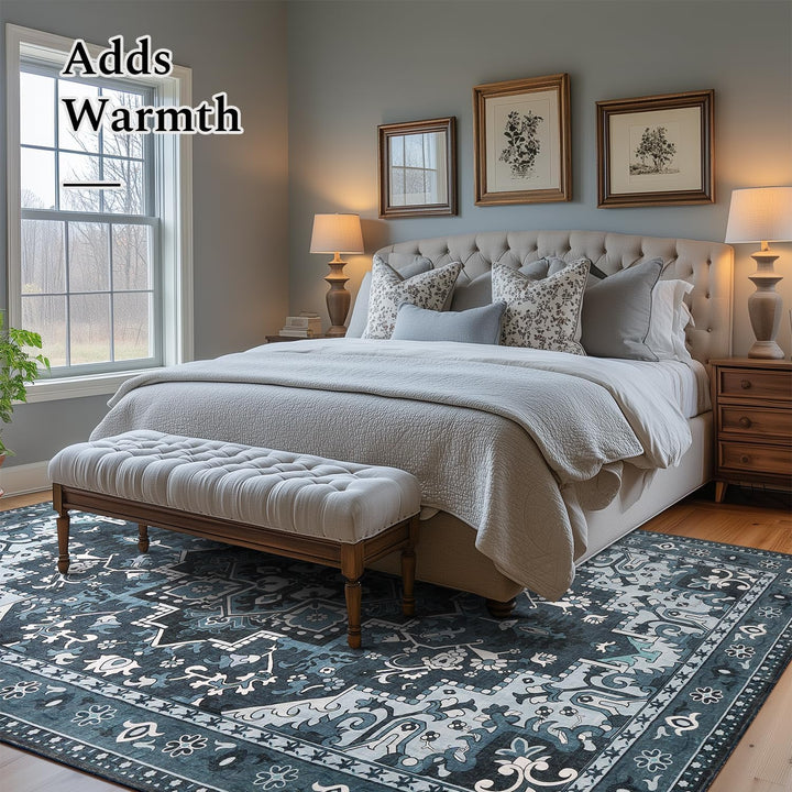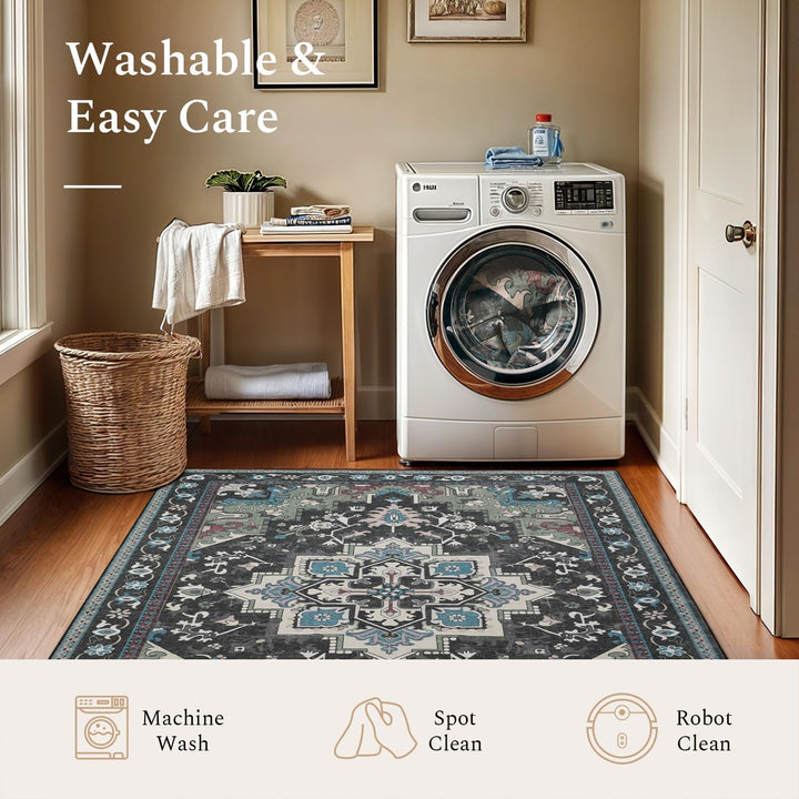 Easy Machine Washable: Stain resistant printed surface repels spills instantly, while being fully machine washable for super convenient deep cleaning - simply fold and cold wash (no bleach!), its foldable design saves space during maintenance, making floor care a 6-minute task