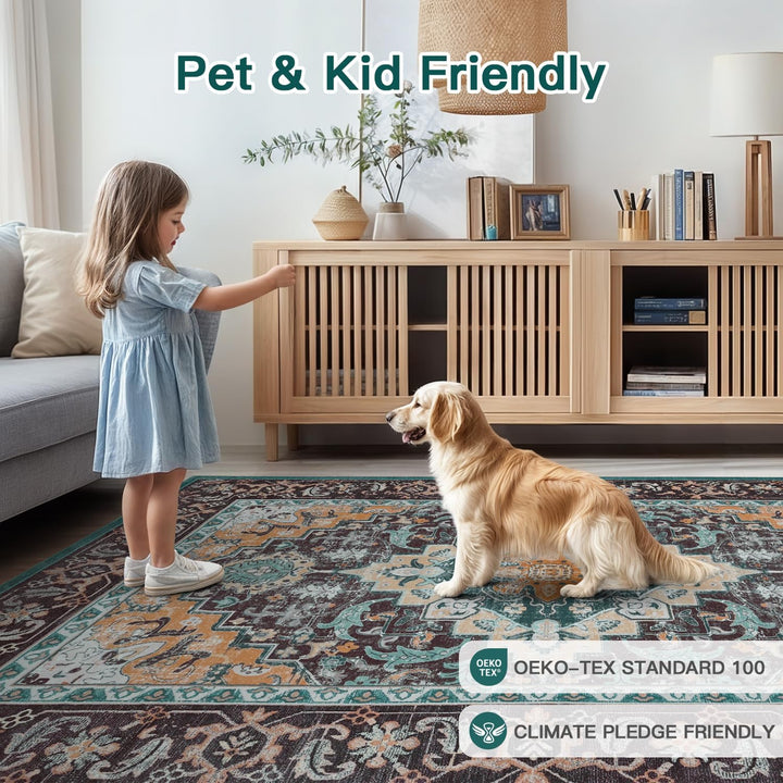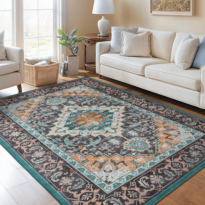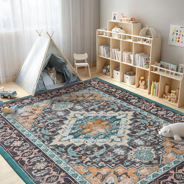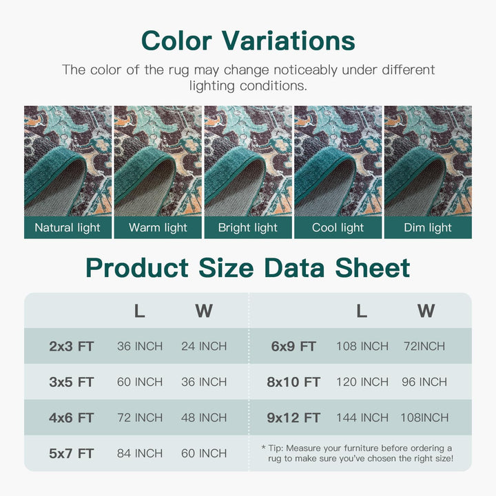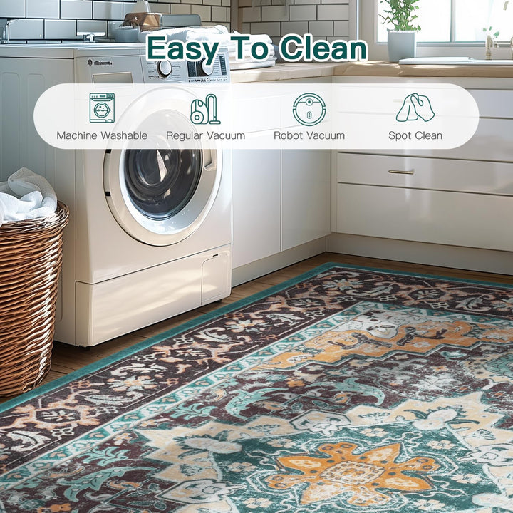 Machine Washable Area Rug: This area rug is stain-resistant and water-repellent, making it easy to maintain. For regular cleaning, simply use a vacuum, broom, or spot clean with a damp cloth. When it needs a deep clean, toss it in the washing machine on a gentle, cold cycle. Be sure not to use heat or bleach