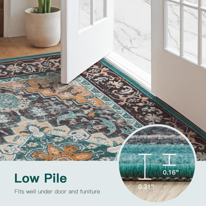Low Pile area Rug: This living room area rug can be easily placed at entryways or under furniture without getting stuck under doors or creating tripping hazards. The 0.16" pile height prevents pet hair from getting trapped, while also ensuring your pet's paws won’t get caught in the fibers or scratch the floor