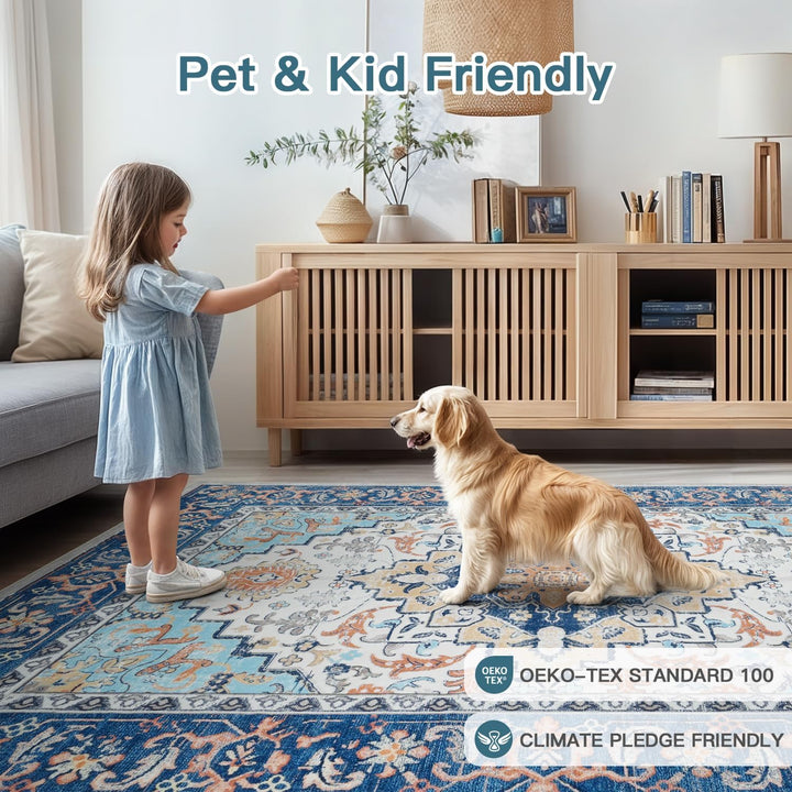 Ultra-Soft & Non-Slip: The surface of the boho area rug is made from soft faux wool, making it feel like walking on clouds—warm and comfortable underfoot. The backing features non-slip rubber that securely grips the floor, ensuring the area rugs stay in place when walked or run on. This offers peace of mind, especially for households with elderly members, children, or pets
