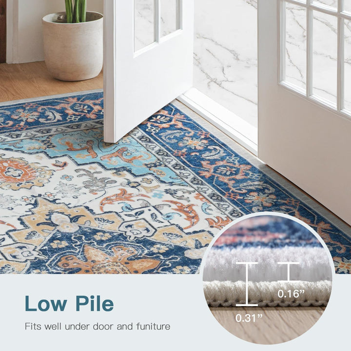 Low Pile area Rug: This living room area rug can be easily placed at entryways or under furniture without getting stuck under doors or creating tripping hazards. The 0.16" pile height prevents pet hair from getting trapped, while also ensuring your pet's paws won’t get caught in the fibers or scratch the floor