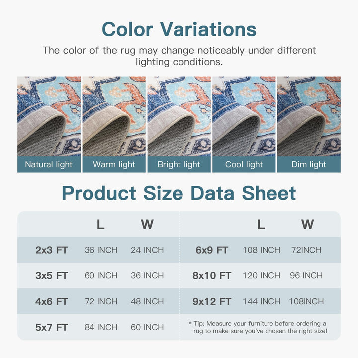 Machine Washable Area Rug: This area rug is stain-resistant and water-repellent, making it easy to maintain. For regular cleaning, simply use a vacuum, broom, or spot clean with a damp cloth. When it needs a deep clean, toss it in the washing machine on a gentle, cold cycle. Be sure not to use heat or bleach