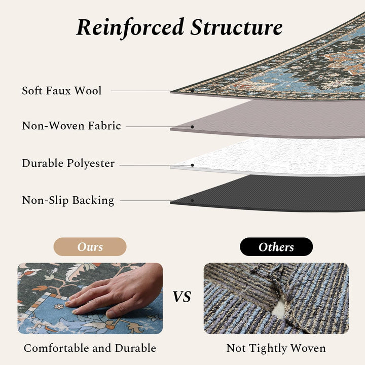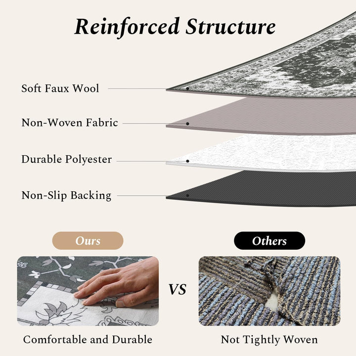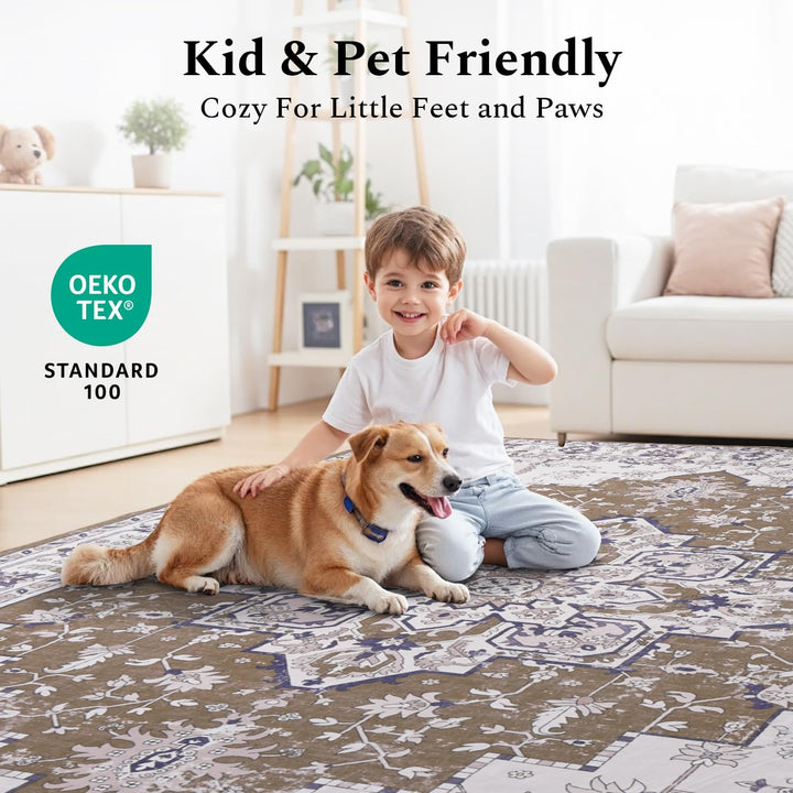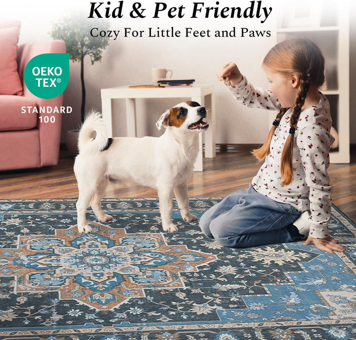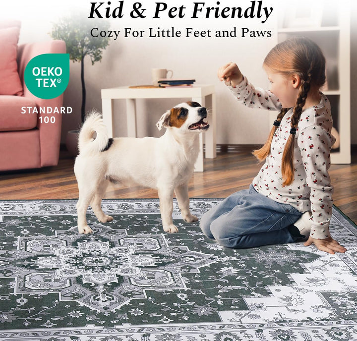 Safe & Non-Slip: It comes with a high-quality non-skid TPR rubber backing that grips kinds of floors, ensuring it stays put without needing a rug pad. Perfect for active households, it keeps kids and pets safe during play and offers added security for seniors
