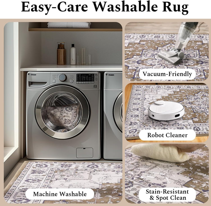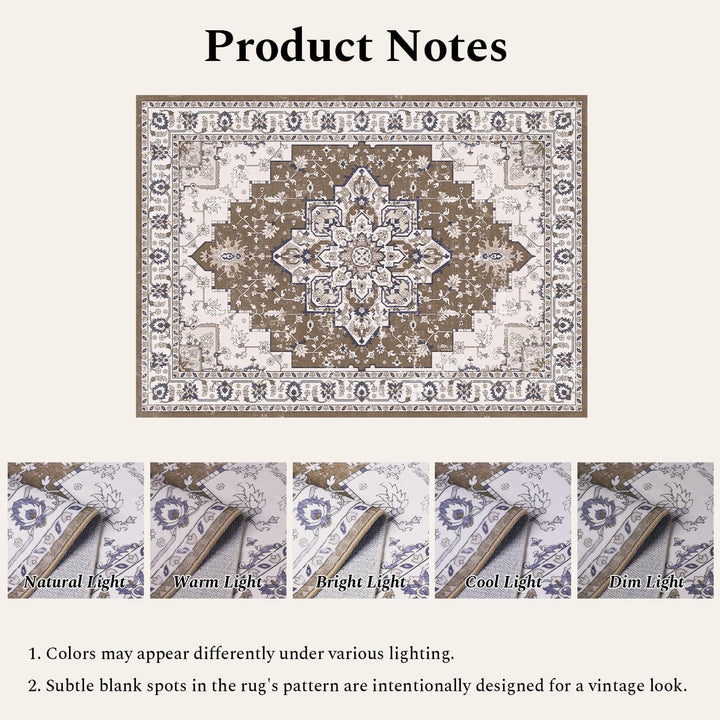 Classic Vintage Distressed: Features a floral pattern in warm brown tones, seamlessly blending traditional and modern style. The balanced mix of bright and dark tones not only adds depth but also helps disguise stains that elevates your room decor