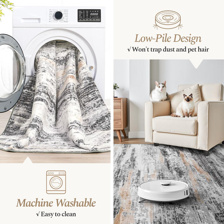 Versatile Contemporary Design: Neutral beige-grey stone-inspired pattern seamlessly integrates with modern, contemporary, and boho interior styles; multiple sizes (5×7, 6×9, 8×10, and 9×12) available; easily foldable for flat storage when not in use