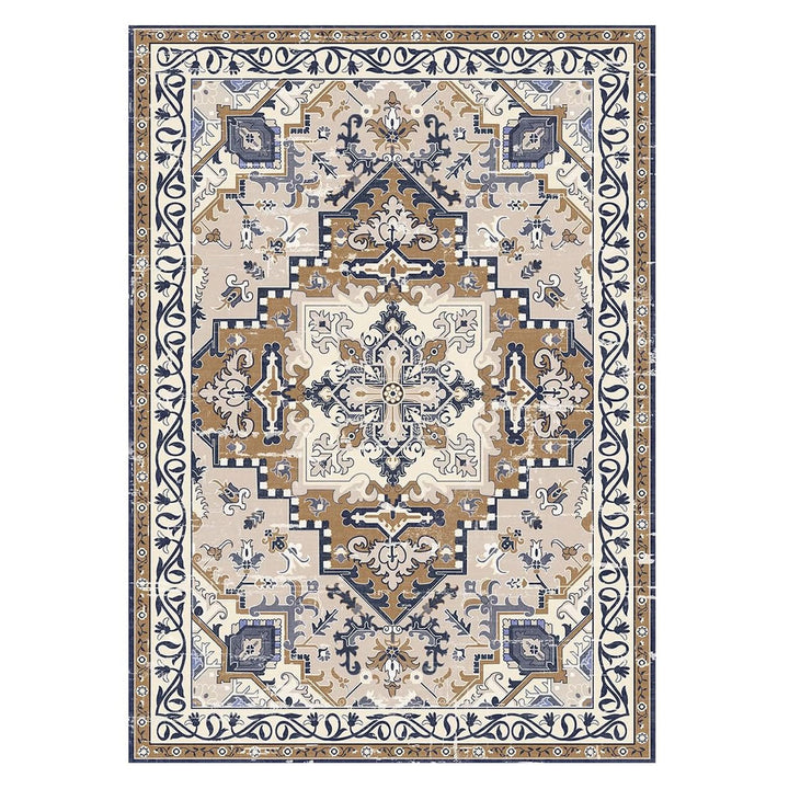 Retro Print Design: Oriental distressed print in vintage tan tones, creates an heirloom quality decor statement. Each unique piece features artistic imperfections, making it a conversation. Starting collection item that elevates boho chic or eclectic interiors