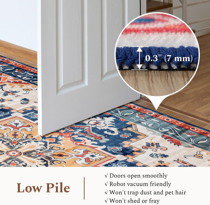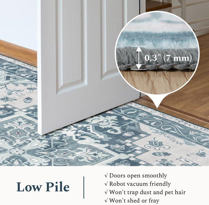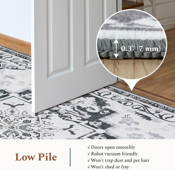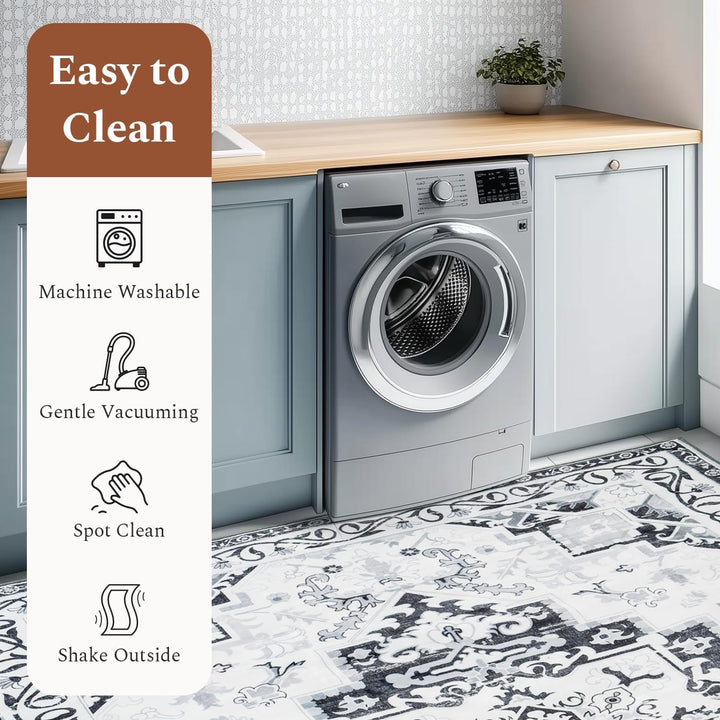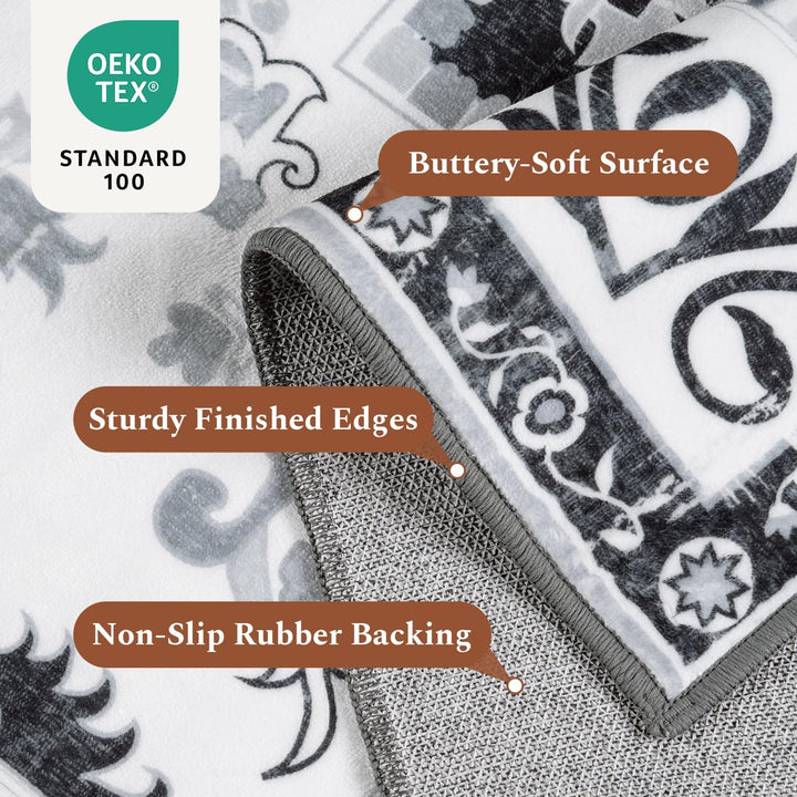 Non-Slip Backing: Natural rubber backing provides industrial grade non skid grip, securing firmly to hardwood tile or laminate floors. This thick safety backing eliminates slips and bunching offering 360° stability for active households with children elderly or pets