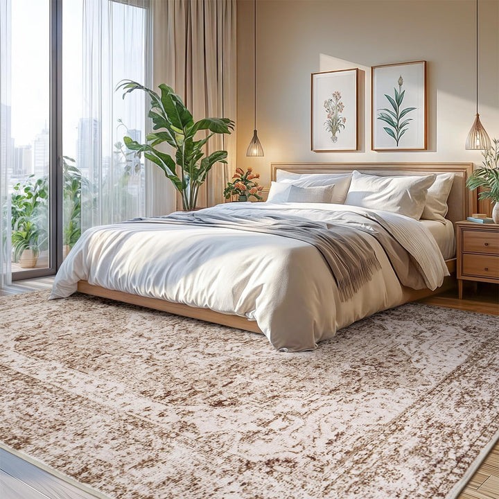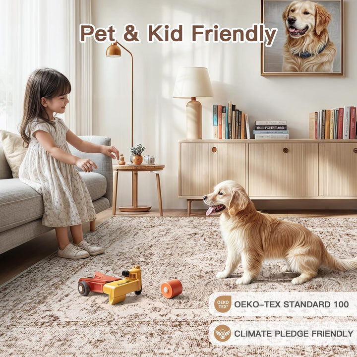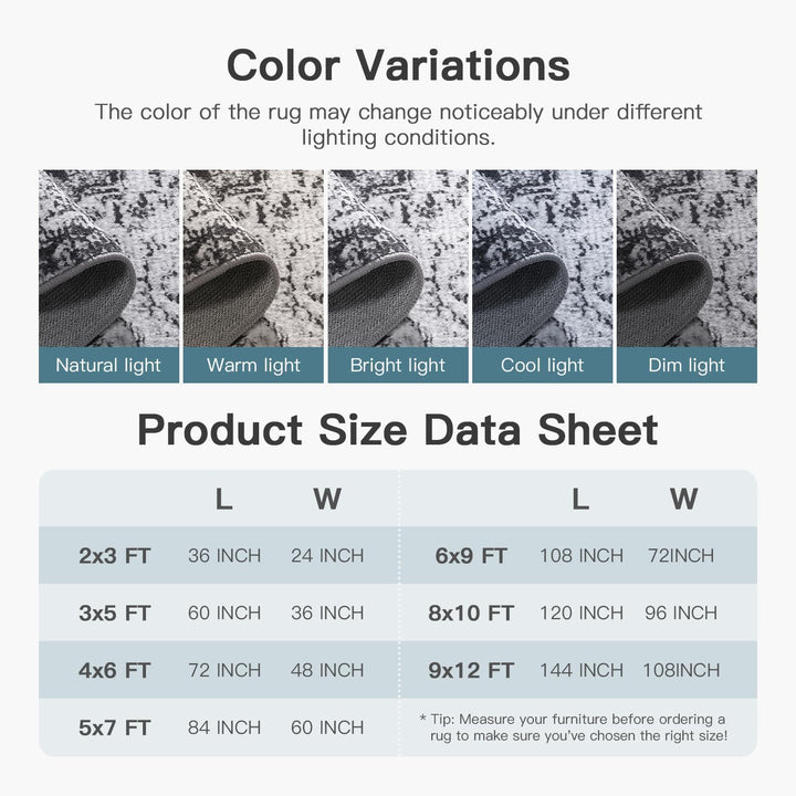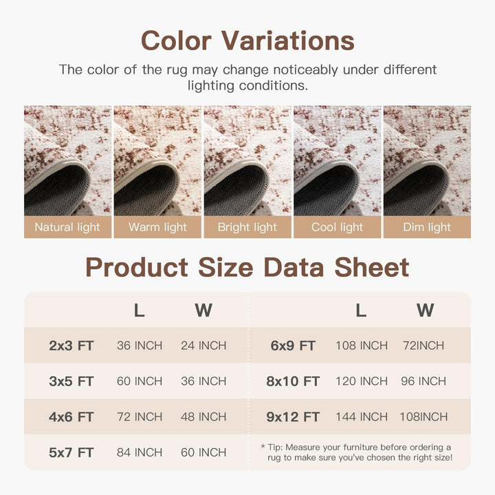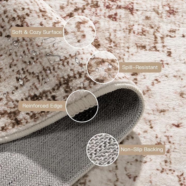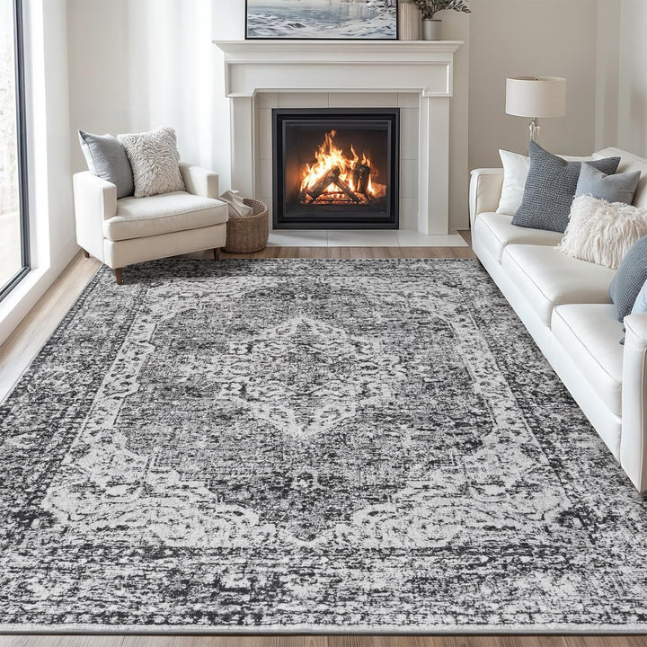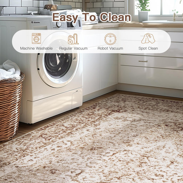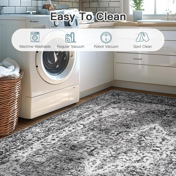Machine Washable Rug: This large area rug is easy to clean and maintain, thanks to its stain-resistant feature that let you wipe away spills effortlessly. It’s also machine washable on a gentle, cold cycle. For everyday upkeep, just run a vacuum or let your robotic cleaner do the work