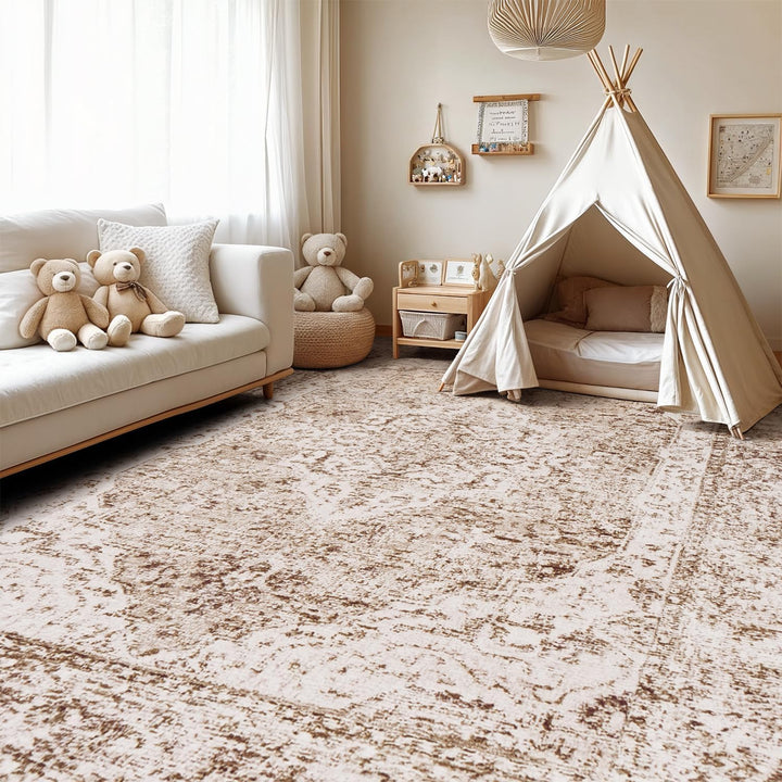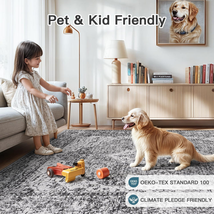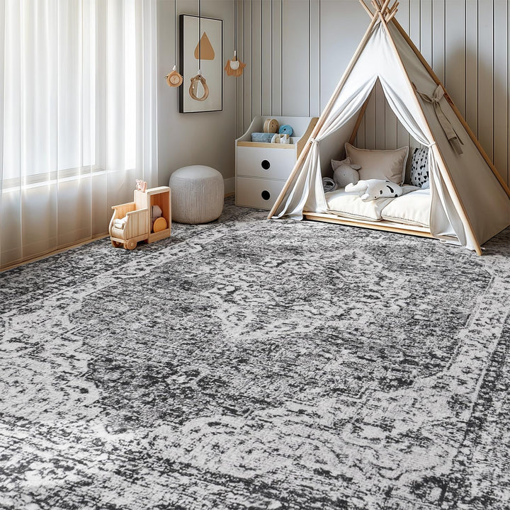 Luxuriously Soft & Non-Slip: Crafted with denser low-pile faux wool fibers, this 5x7 area rugs offer a soft and gentle touch underfoot. The enhanced non-slip TPR backing keeps it securely in place on any floor, providing peace of mind for all your family members — whether it's kids or pets