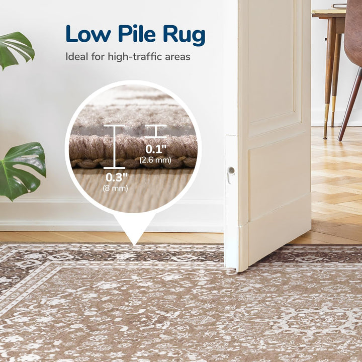 Low Pile Area Rug: Lessymo living room area rugs can be easily placed at entryways or under furniture without getting stuck under doors, perfect for high-traffic areas. The 0.16" pile height prevents pet hair from getting trapped, while also ensuring your pet's paws won’t get caught in the fibers or scratch the floor