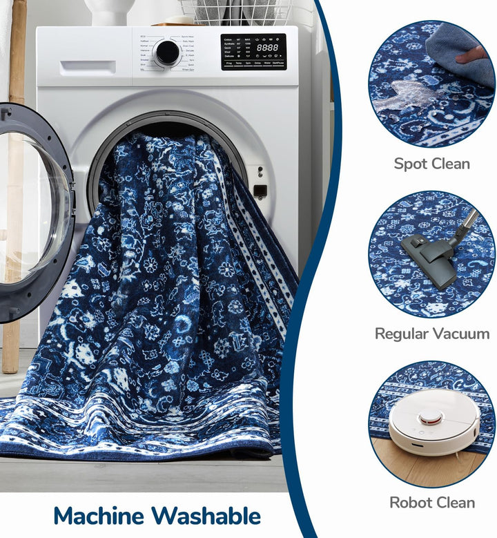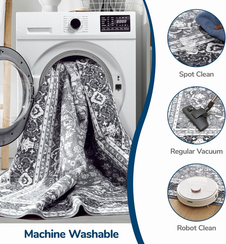 Machine Washable Area Rug: This thick area rug is stain-resistant and water-repellent, making it easy to maintain. Spills will only remain on the surface, allowing for quick and easy cleanup with a simple wipe of a cloth. For routine care, a vacuum or broom suffices. When it needs a deeper clean, machine wash the rug on a gentle, cold cycle, following the size-specific instructions. Do not use heat or bleach