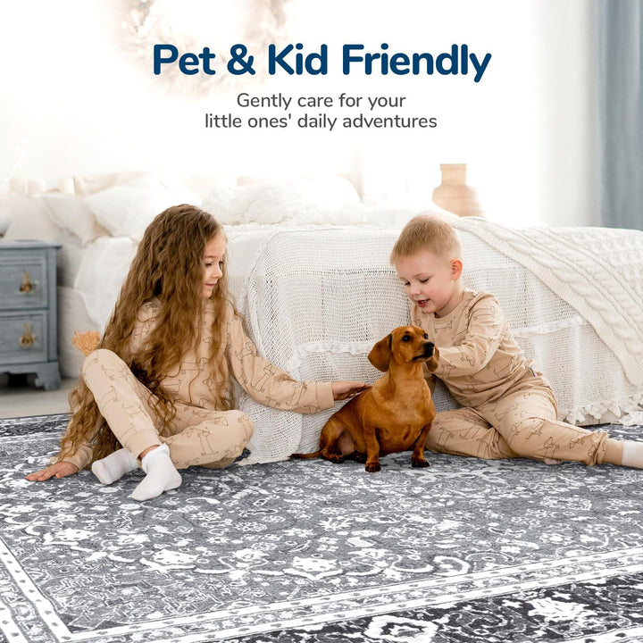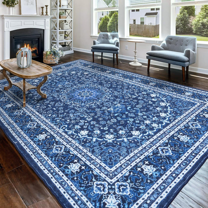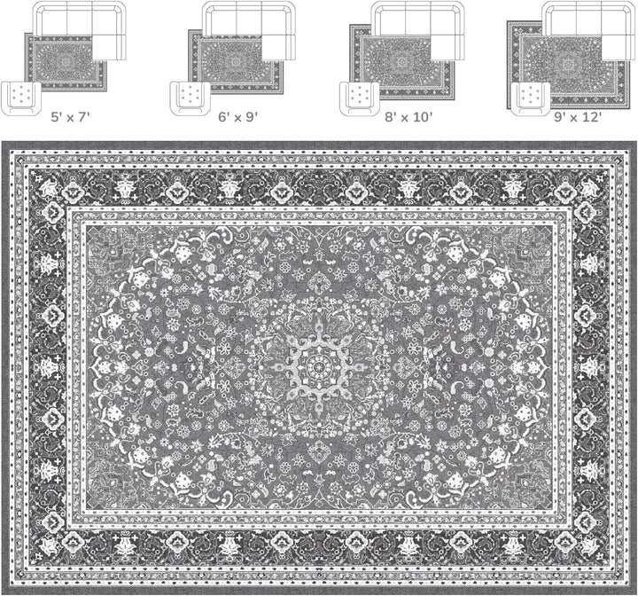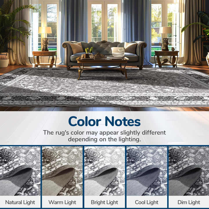 Vintage Area Rug: This exquisite area rug features a central floral medallion and ornate border, bringing a touch of classic elegance to your home. With its contrasting blue, gray, brown and cream colour scheme, the area rugs 5x7 add a touch of warmth and luxury to any space, whether your living room, bedroom, dining area, kitchen or home office